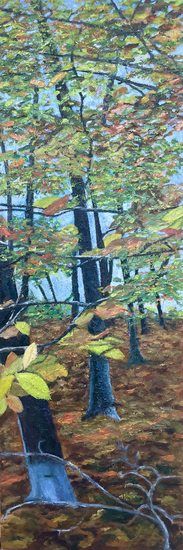 Op vier wanden nabij de Rode trap zijn schilderen van Dorine van Rij te zien.