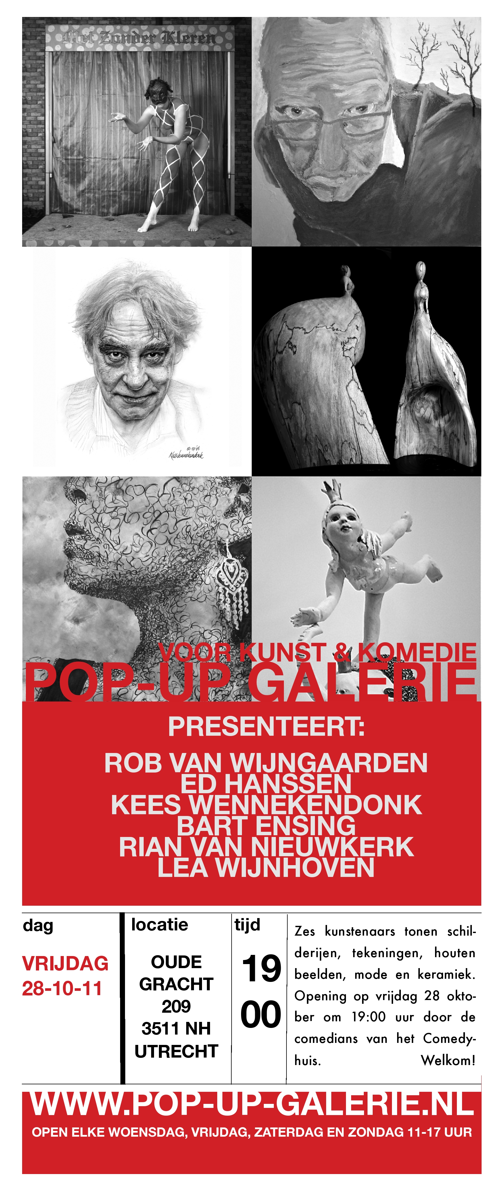 Van Kunstnieuws-redacteur Rian van NieuwkerkPop-Up Galerie…een initiatief van het artistiek duo Jeroen Pater en Sasja Bork, heeft op vrijdag 2 september voor het eerst de deuren geopend aan de Oude Gracht te Utrecht.