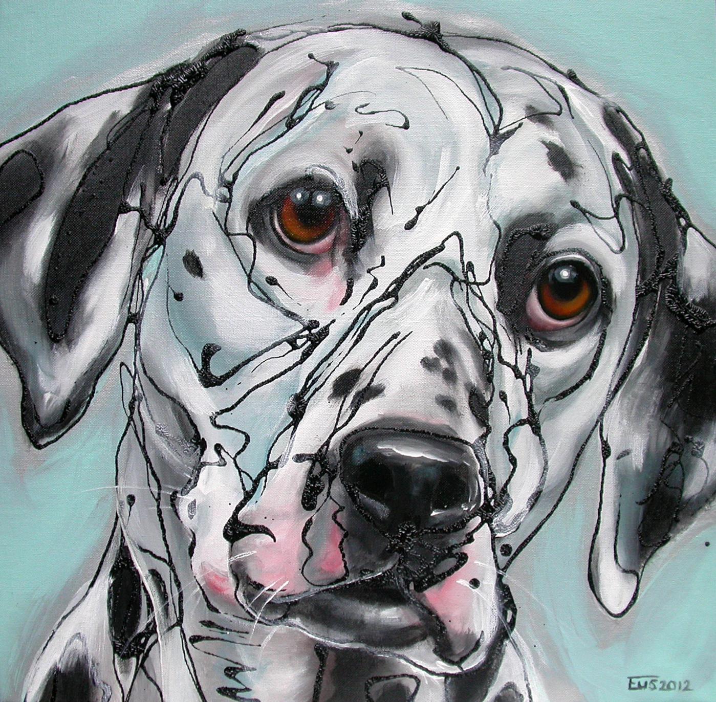 "Spotted Spirit" gemaakt. De naam (en het type hond) heeft ze gekozen daar de BFA onlangs een aantal Dalmatiƫrs hebben bevrijd en het over het algemeen om dieren gaat met een zwaar verleden of slechte start. Een gevlekte geest dus...