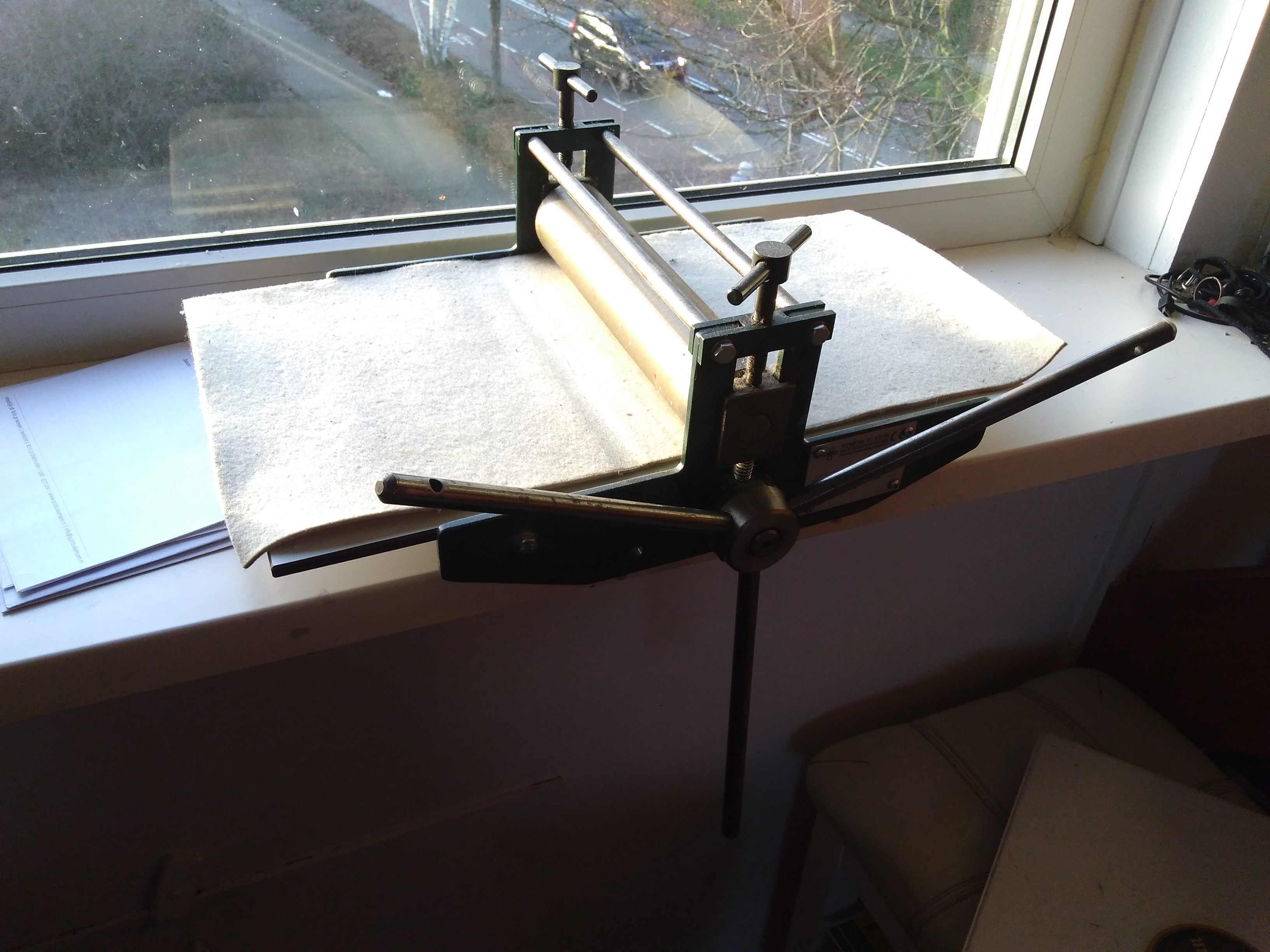 Zo goed als nieuw, want nooit gebruikt. (aangeschaft met het idee ermee te gaan werken, maar etsen is toch mijn ´ding´ niet) Plaatformaat (bed): 25x45cm Afmetingen van de pers: 34cm (l) x 32cm (b) x 17cm (h)
