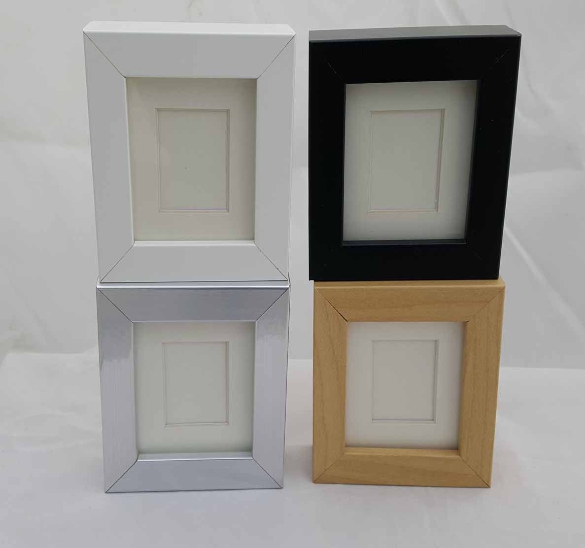 Ik was al lange tijd op zoek naar kleine fotoframes voor mijn kunstobjectjes. Ooit had de Ikea ze, maar die zijn niet meer te koop. Ik heb ze nu gevonden (net iets kleiner dan die van de Ikea). Ik heb er nu mijn mooiste postzegels in, kleine pasfoto's en wat veertjes en beestjes. Ze zijn 3 cm dik en hebben een passe partout. Ik heb ze in verschillende kleuren.