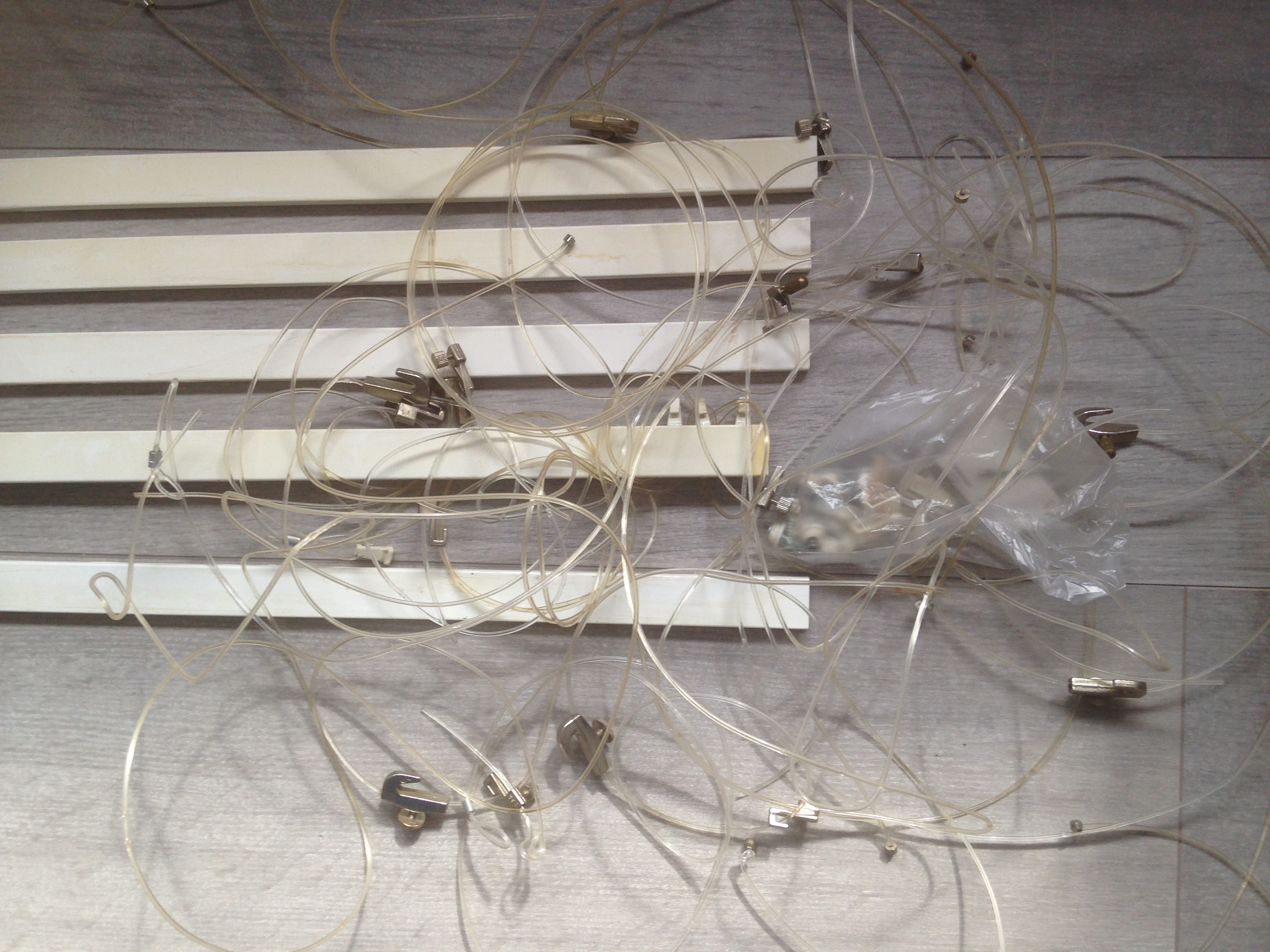 heb je de muurblokjes veilig gesteld? anders zijn ze moeilijk op te hangen. ik heb er zelf ook 'over' maar voor iemand anders: het zijn fijne rails. alleen tip: een stukje tussen de rails open laten zodat je links en rechts kunt invoegen met draden. ( dan hoef je niet alles te verhangen bij een extra schilderij)