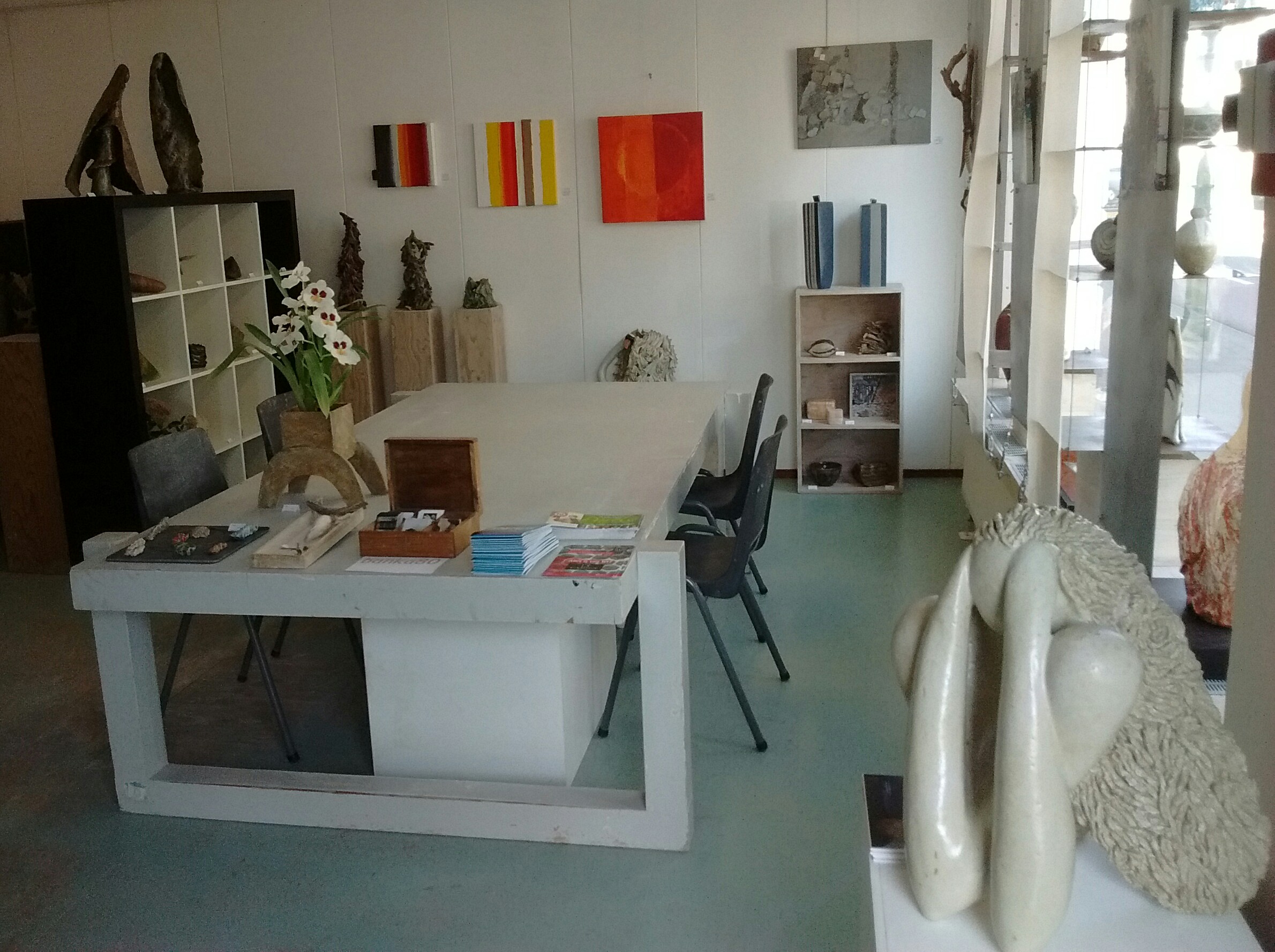 Klein keramiekatelier met beperkt verkoop- en expositieruimte zoekt nieuw lid/medehuurder. Wij zijn nu met vier leden.