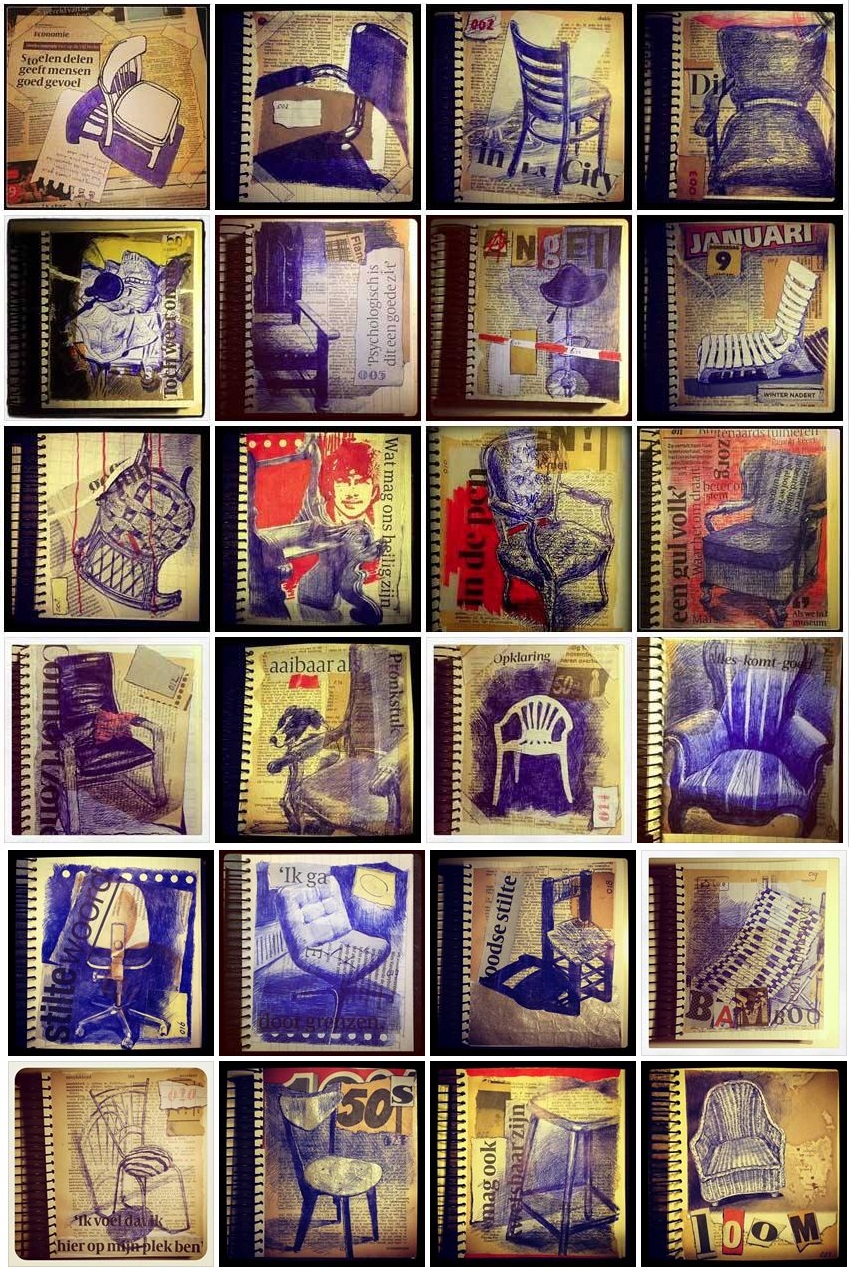 Al 2 jaar maak ik iedere dag een tekening in bic. In 2012 in journaalvorm, in 2013 op de voorpagina van de Volkskrant en in 2014 weer in journaalvorm. Dit jaar heb ik er een thema in verweven: Share a Chair, oftewel, "deel een stoel dat geeft een goed gevoel".
