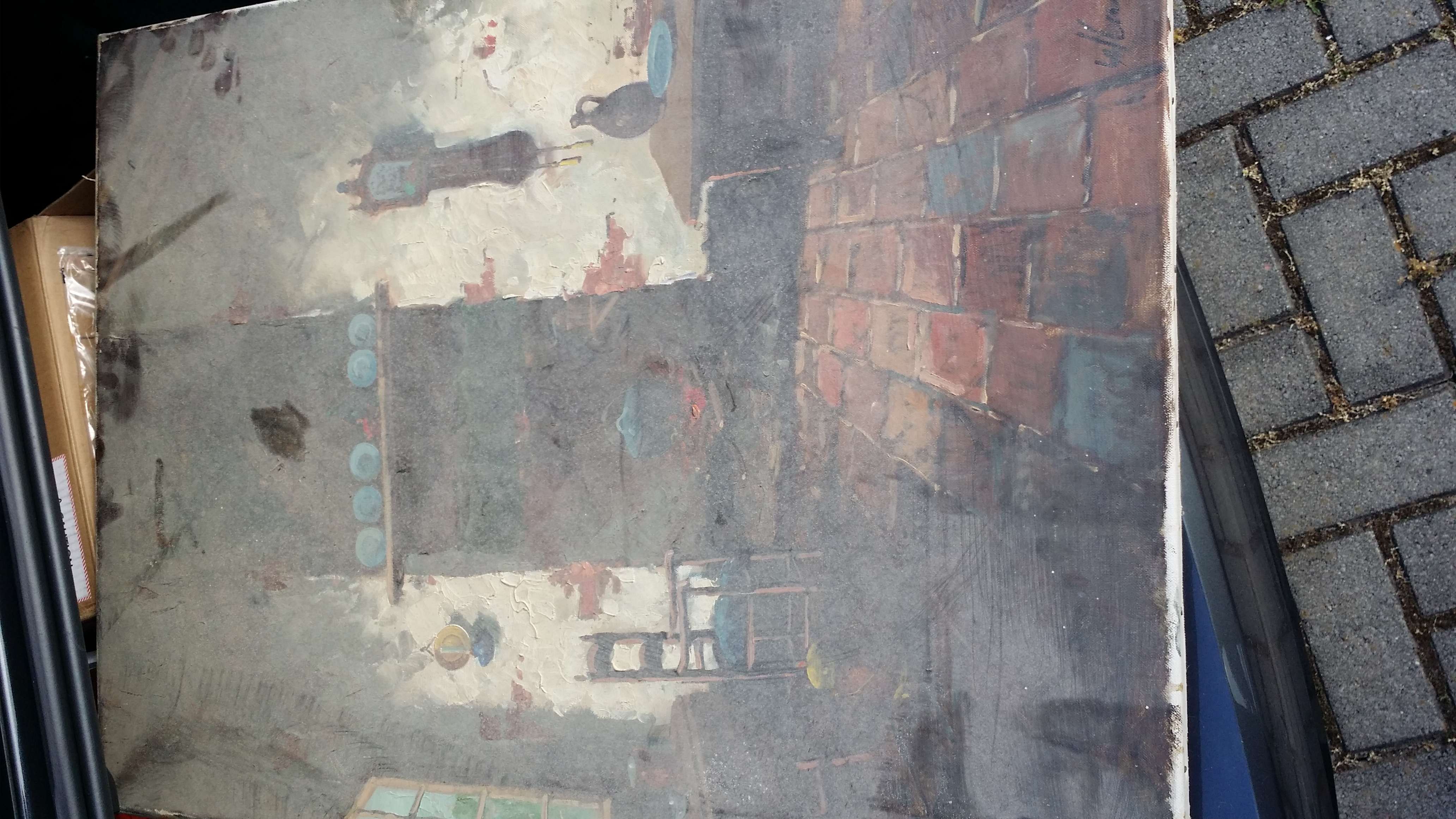 Gisteren hebben wij bij het weghalen van een muurtje een schilderij gevonden, deze zat als het ware in de muur gemetseld. Graag hoor ik of iemand de handtekening of de schilderstijl van de schilder herkend.