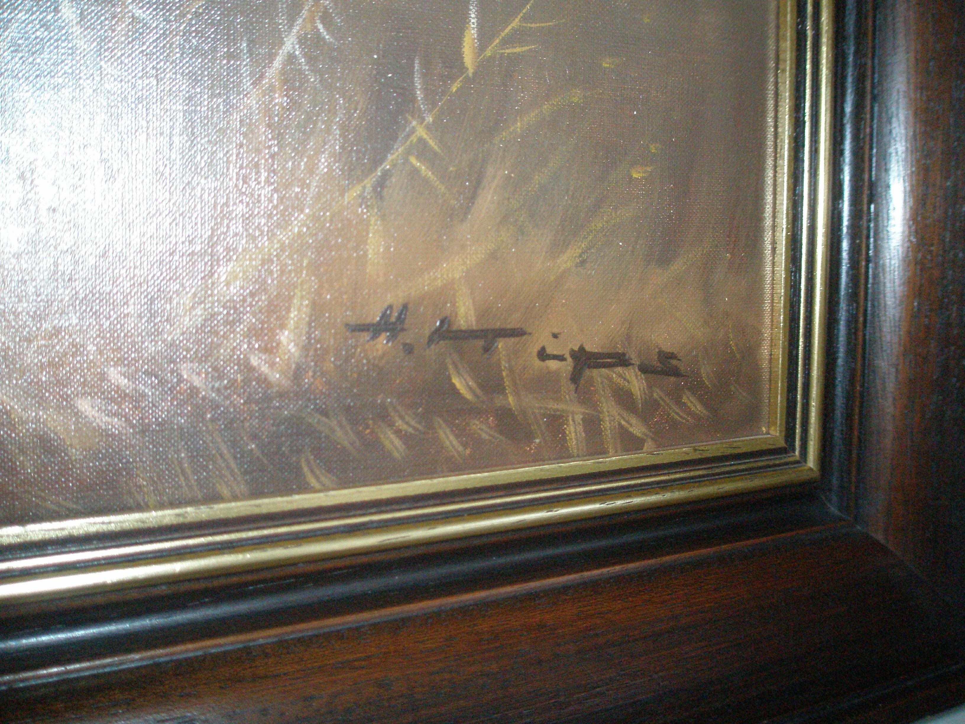 schilderij al jaren in mijn bezit afbeelding landschap met eenden, geen idee wie de schilder is afm 84*73cm komt volgens mij oorspronkelijk uit duitsland.