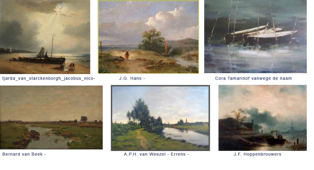 Mooie suggesties van Erik in zijn lijstje, maar we kunnen er ook meteen een paar wegstrepen: Allereerst Cora Tamarinof ( http://users.bart.nl/~sascha/); die is het bijna zeker niet. De meeste van haar landschappen tonen een compleet ander palet en ze aquarelleert vooral haar landschappen. J.F. Hoppenbrouwers doet mij sterk aan Koekoek (zelf kiezen welke) denken ( http://www.galerietrompenburgh.nl/HOPPENBROUWERS.html) neen, J.F. is het zeker NIET En ook Gerard Delfgaauw.....neen ECHT niet ( http://www.rogerarts.com/collection/pai ... auwcol.htm) J.G. Hans is het ook al niet ( http://www.galeriewijdemeren.nl/Hans.htm). Deze leerling van Schelfhout maakte er toch echt wat anders van. Ook Jacobus Nicolas Tjarda Van Starckenborgh ( http://www.simonis-buunk.nl/verkocht/ku ... _2131.aspx) direct wegstrepen. Die heeft juist een heel fijne penseelvoering en hoge mate van perfectie in de uitwerking van details. Tja dan misschien Bernard van Beek (neen, geen familie)? Nou neen ook hij niet, want die voert echt een compleet ander palet en werkt vrijwel nooit zo fijn uit. Zover ik werk van A.P.H. van Weezel - Errens (bijv.: http://www.galeriewijdemeren.nl/weezel, ... %20van.htm) kan bekijken is die het beslist ook niet. Neen de schilder(es) van het werk dat Paul ons hier toont is waarschijnlijk iemand die minstens drie van dit ¨soort¨werken per week maakt vrees ik. Het is wel heel strak gemaakt, maar er zit voor mij teveel maniërisme in dit werk....sorry. De handtekening is geen cora, maar luidt (na bestudering) eerder: Gé:A Ik kom er met Erik´s lijstje helaas niet uit en kan hooguit concluderen dat Erik vaak te vinden is in Galerie Wijdemeren.