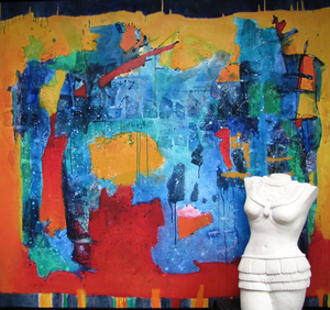 Anke (autodidact) paints mainly with acryl on canvas or board. She experiments with form and colour and is inspired by the African sculptures. Often the frame is part of the work of art.