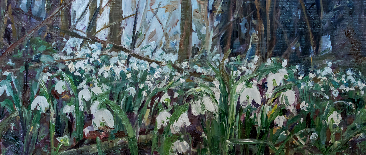 Olieverf Bloem Voorjaar Sneeuwklokjes Galanthus