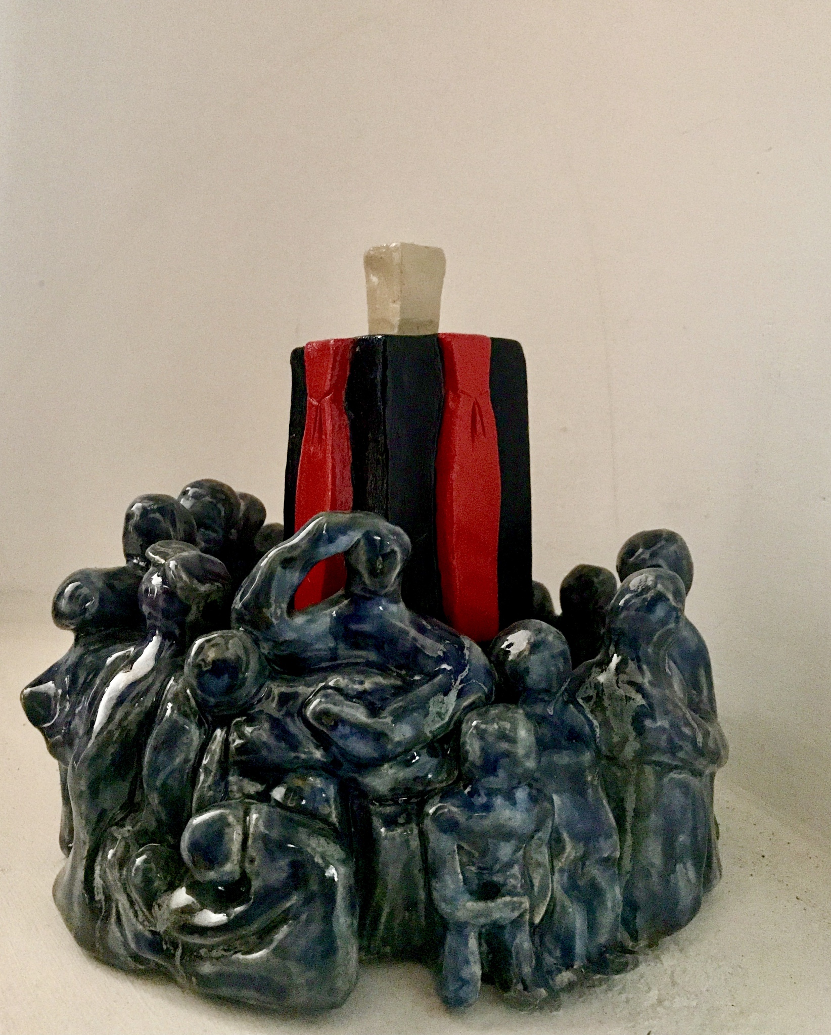 Blue Mixed Media Black White Power Paint People Clay Glaze