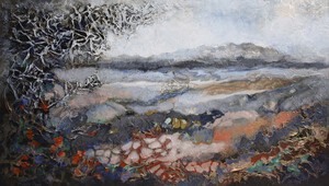 Marly Freij maakt grote kleurrijke, maar ook meer ingetogen schilderijen in gemengde techniek, met name sferische landschappen en abstracte composities