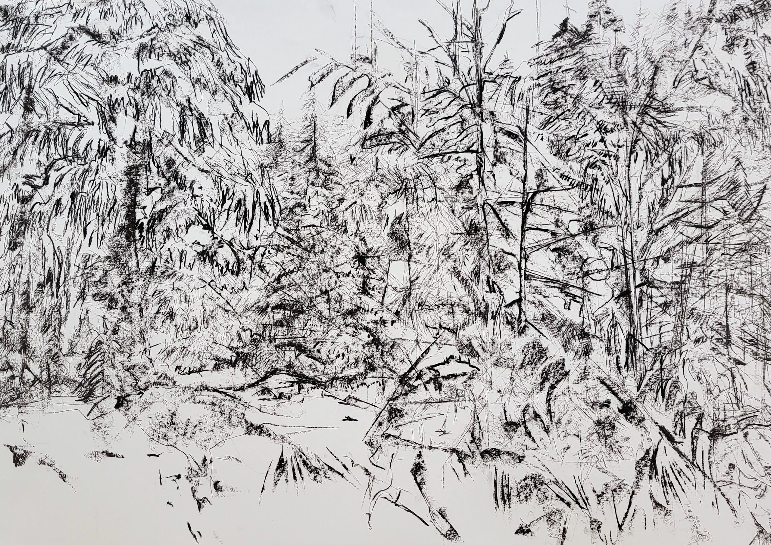 #landschap #tekening #houtskool #winter #natuur