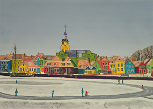 Sneeuw Winter Kerk Kleur Huizen Ijs Schaatsen Schaatsers Blokzijl Ijsbaan Havenkolk