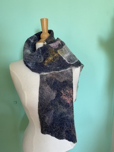 Na jaren vilten ontdekte ik ecoprinten, dwz uit bladeren en bloemen de afdruk weergeven op textiel of papier. Vooral werken met geitenleer heeft mijn voorkeur. Ik maak er vaak tasjes van.