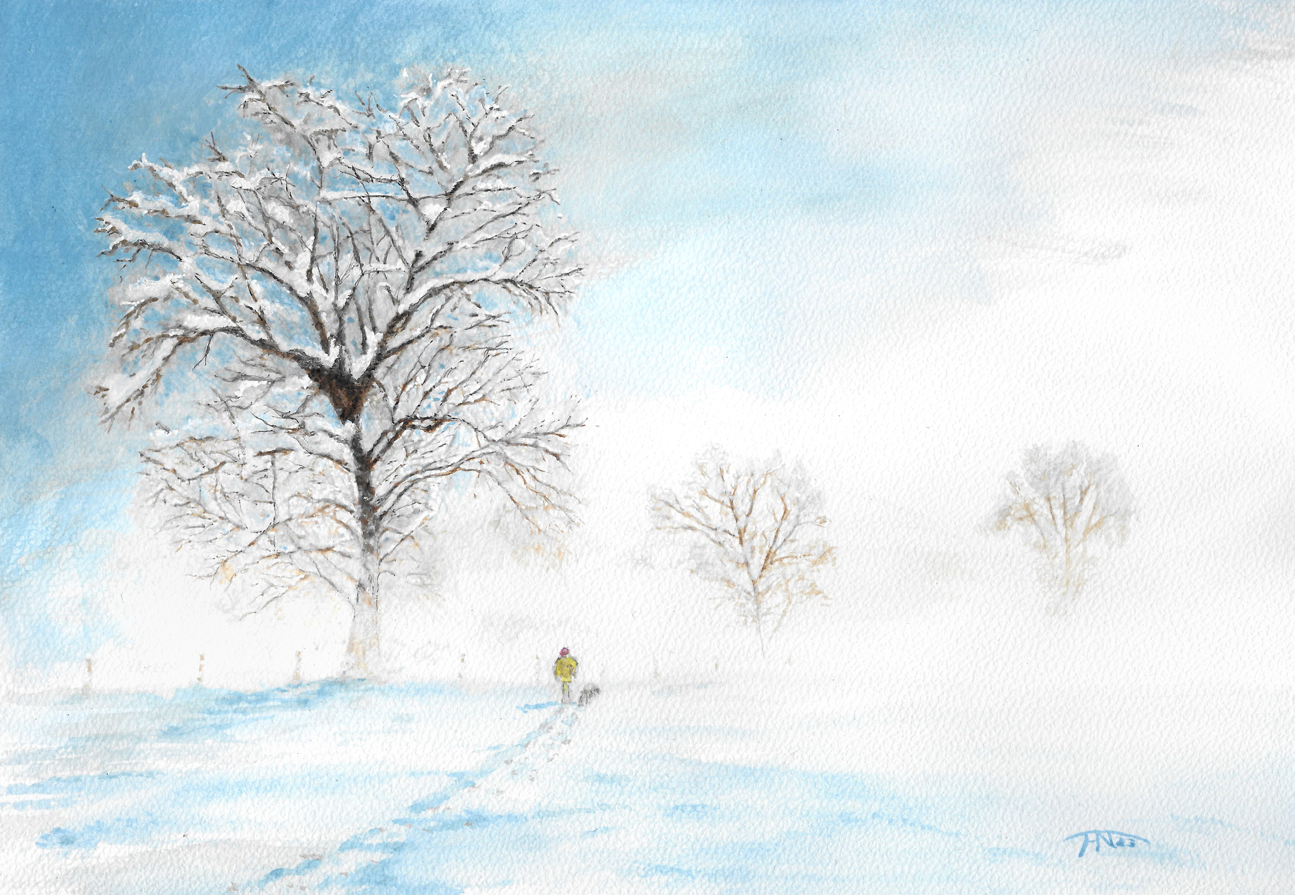 Aquarel Sneeuw Man Hond Mist Frans Nennie