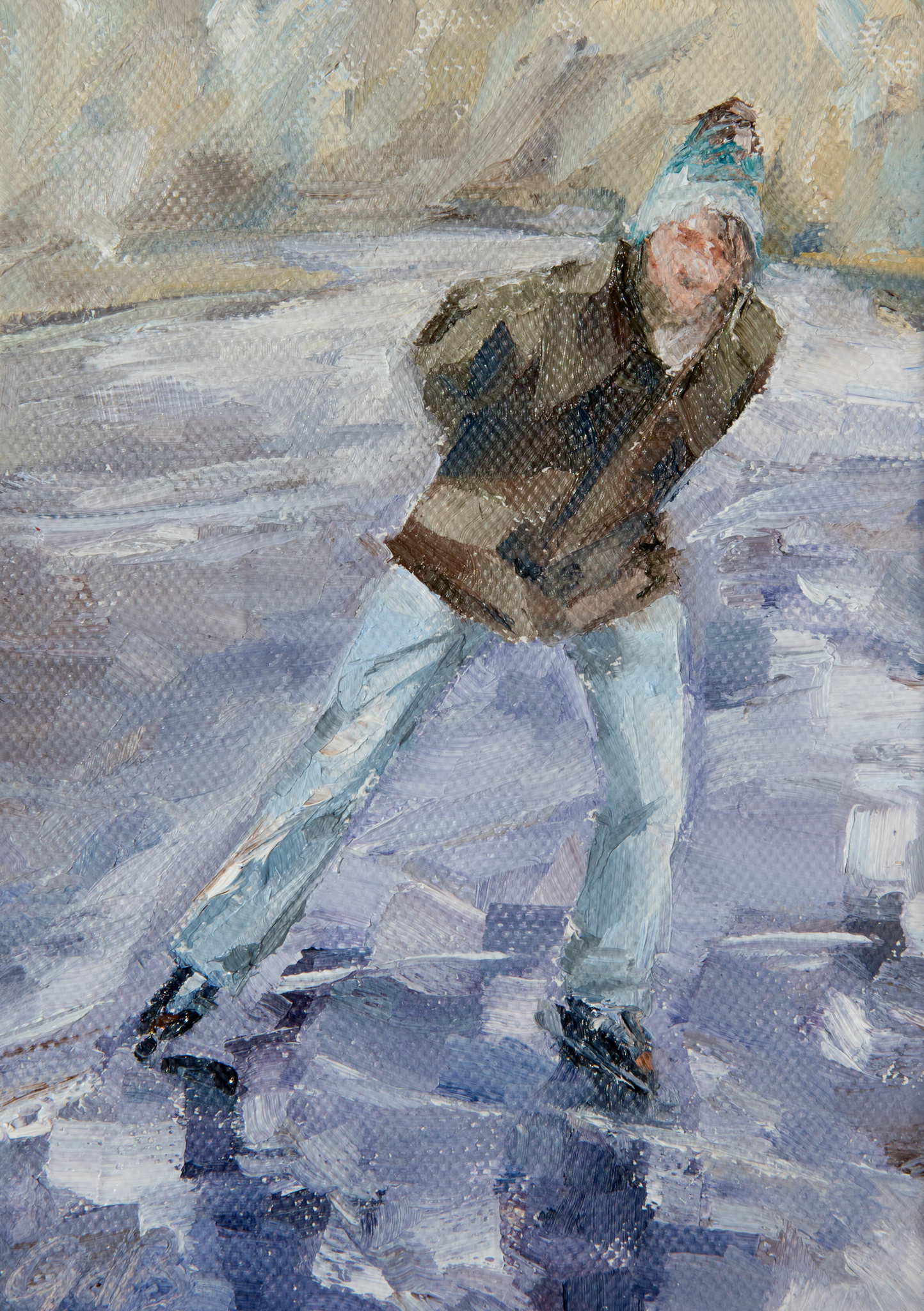 Schaatser Olieverf Winter Ijs