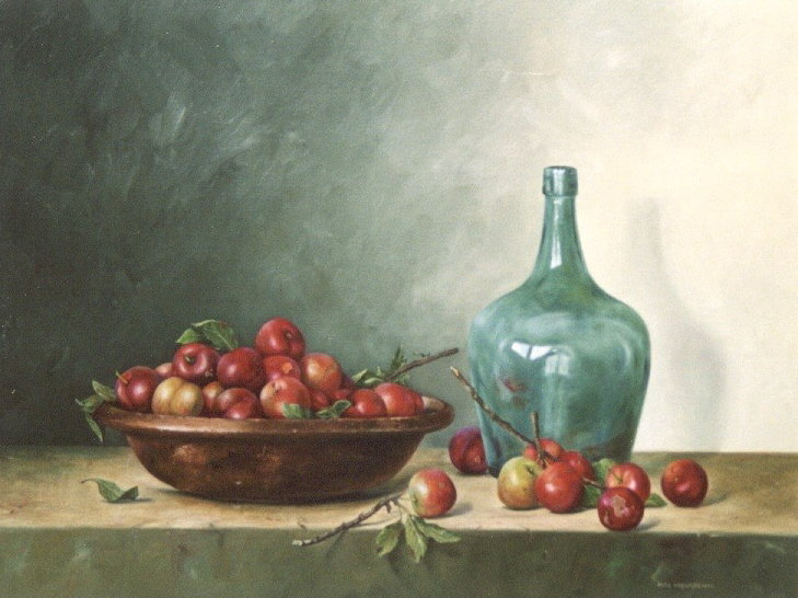 Stilleven met pruimenoogst