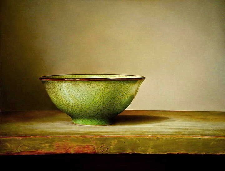 Stilleven met groene kom.