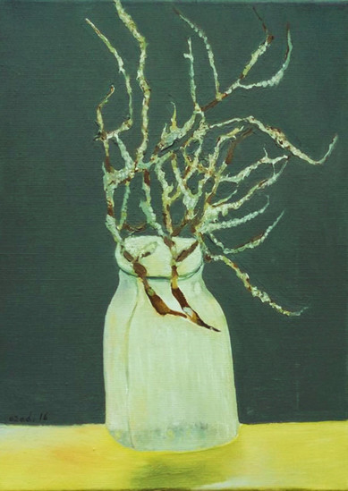 Bloemstilleven met witte en Coral Sunset pioenrozen 1