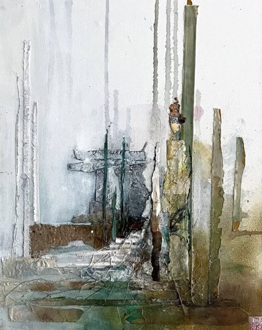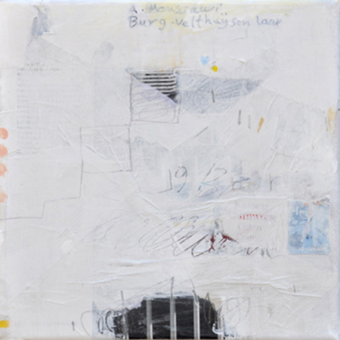 "Hoekig" collage op papier. h50xb32cm. 2001