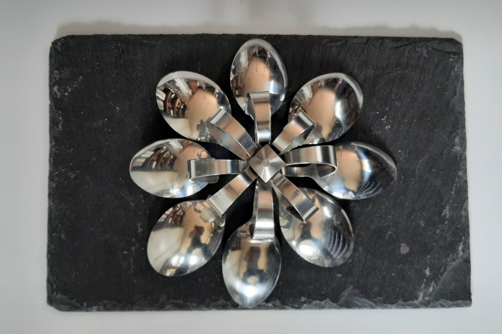 rvs lepelbloem op leisteen 1.