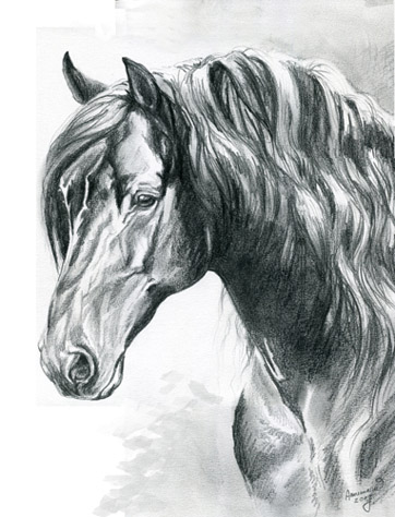 • Grafiet tekening van een prachtig paard