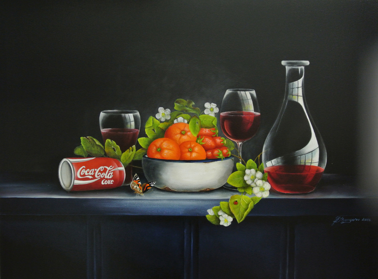 Stilleven met Coca Cola en Wijn