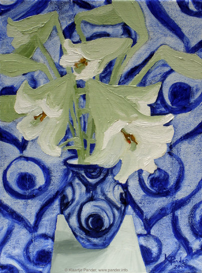 lelies met blauw behang