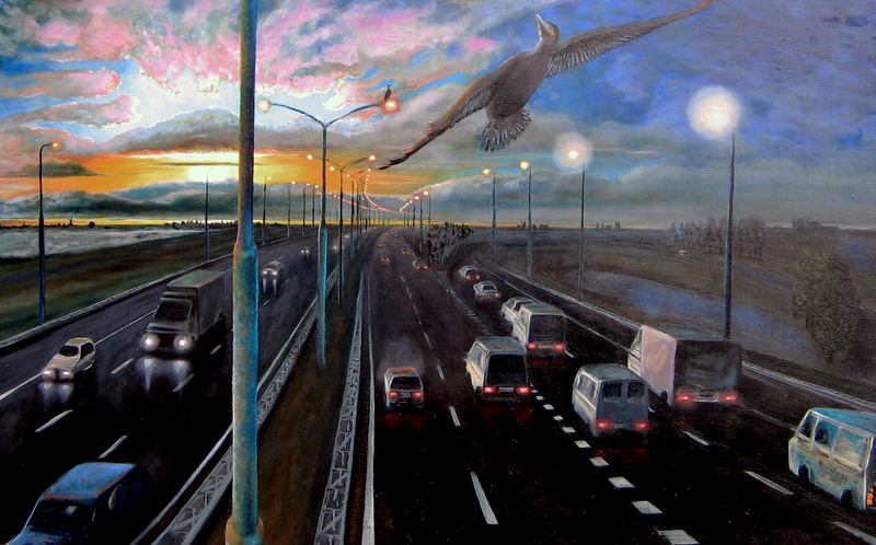 Snelweg met aalscholver — €950,00