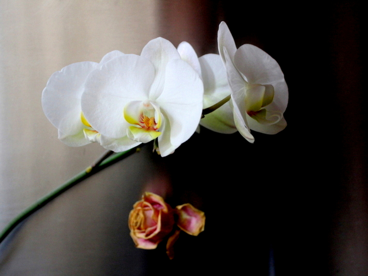 Orchidee met oude rode roos