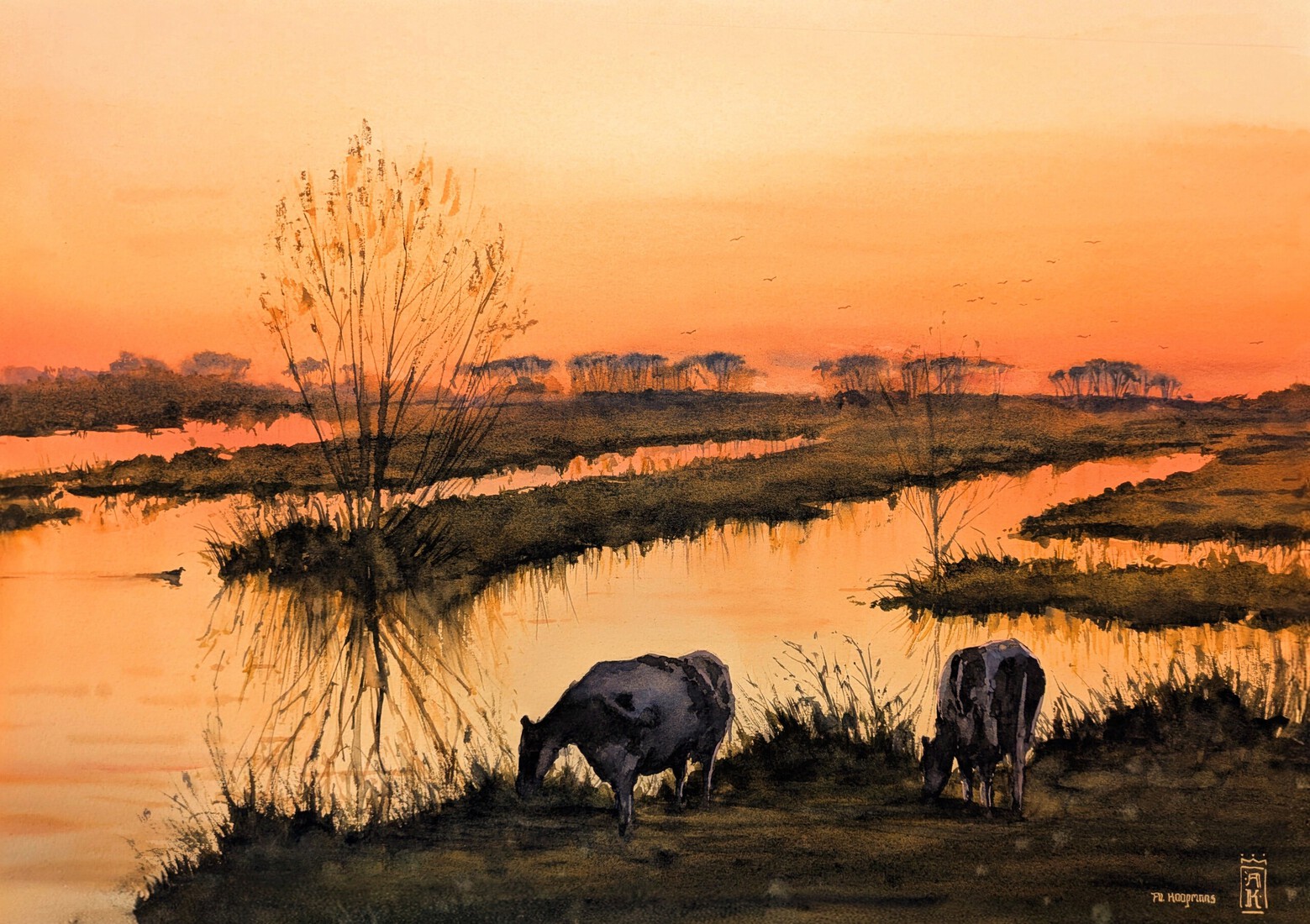 Koeien bij de Plassen in Avondrood