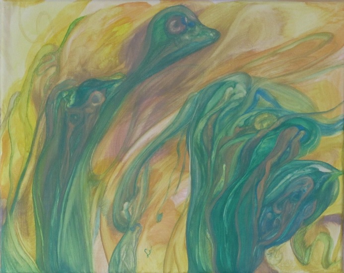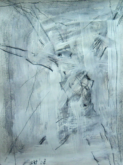 'Bending', een abstracte tekening in verf op papier; niet meer beschikbaar - Fons Heijnsbroek