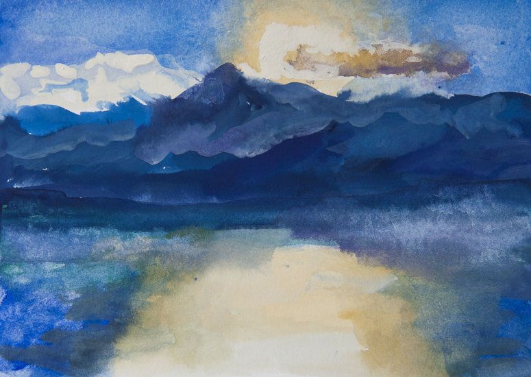 kustlandschap van Sillon de Talbert in Bretagne, Frankrijk - gouache, schilderij op papier, Paul Werner
