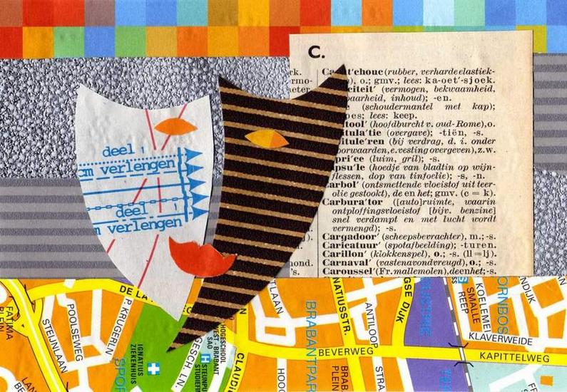 "Tovernarij" collage met lijntekening op papier.h50cmxb42cm. 2023
