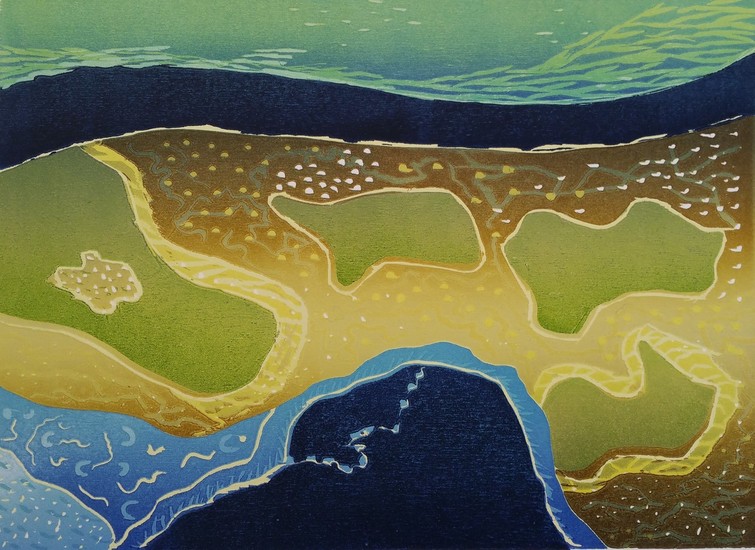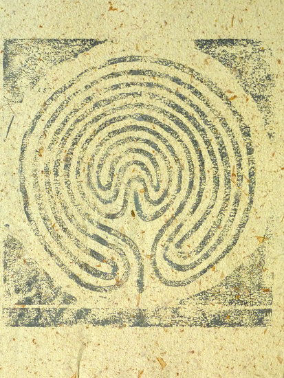 labyrint prent inkt op handgeschept papier