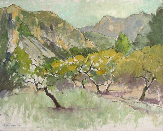 berglandschap met amandelbomen