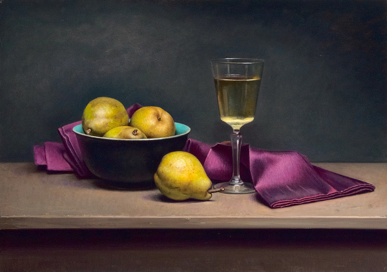 Stilleven met paars doekje