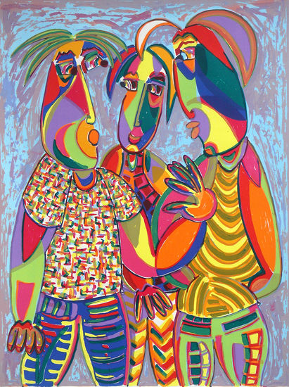'Raster - rood-blauw 3.' - kleurige geometrische abstracte kunst in zeefdruk