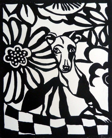 Greyhound with flowers