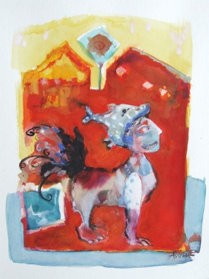'Rood en blauw' gouache G.622