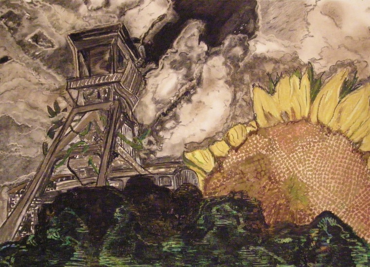 Mathematiek in kleurpotlood 'Vensterkruis' in de serie Monte Oliveto