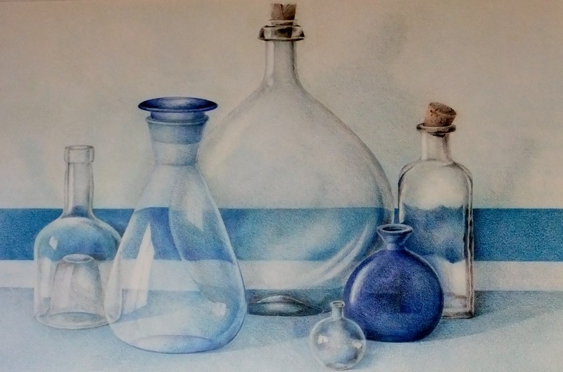 Blauwe flessen