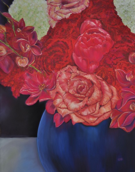 Stilleven met rode doek