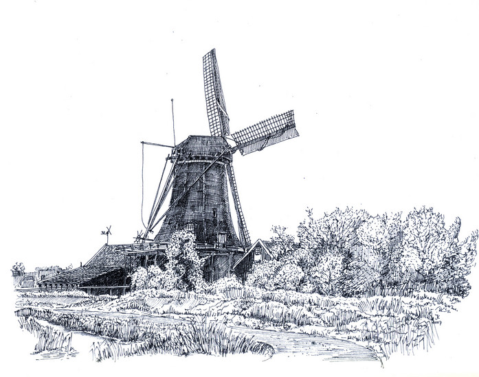 schets uitzict Prins Hendrikkade