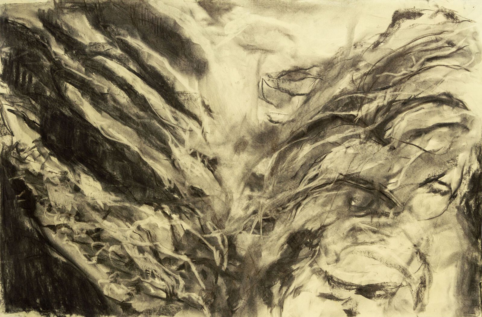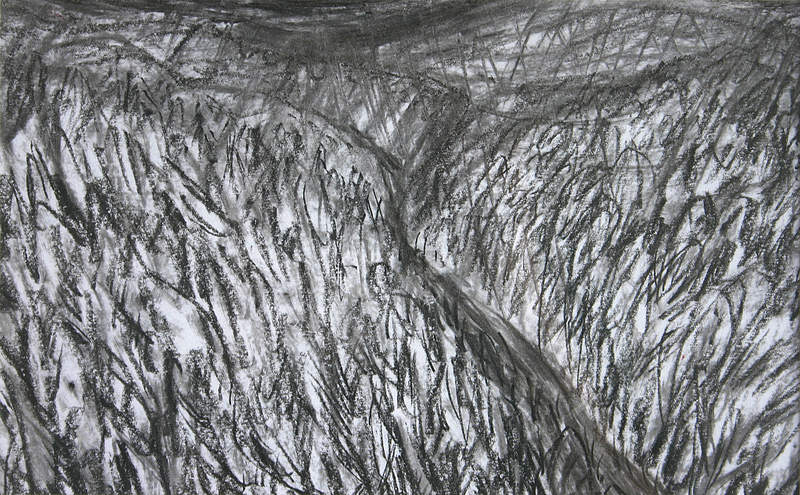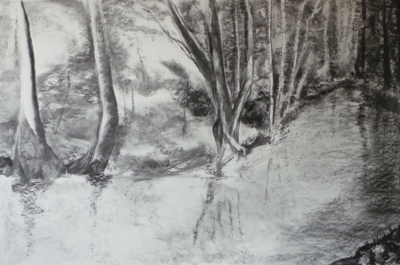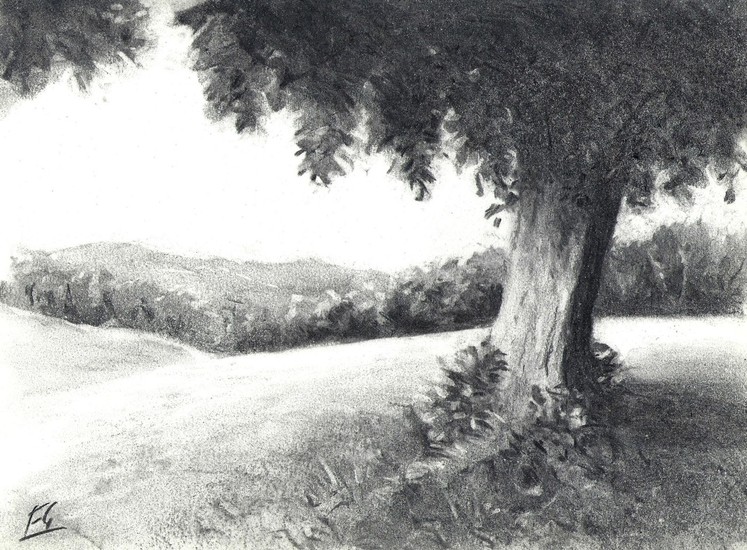 Boom en weide in houtskool.