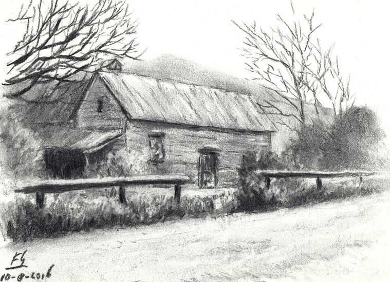 Boerderij in houtskool