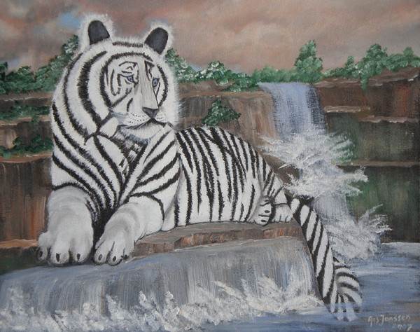Tijger op waterval