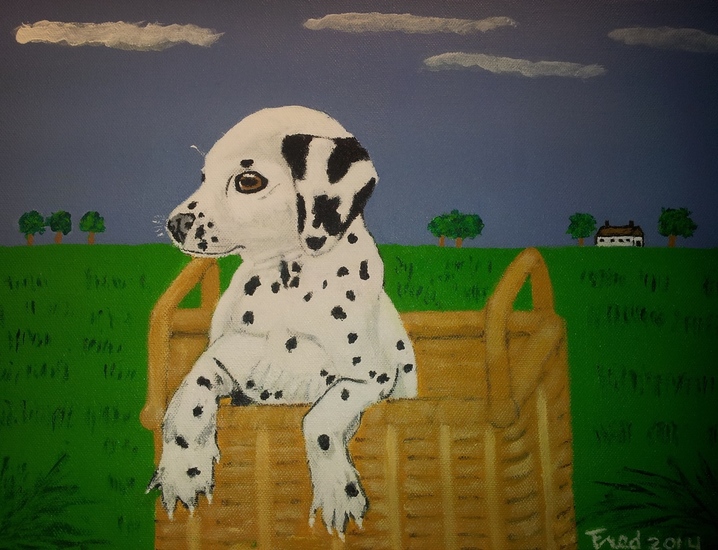 Dalmatiër pup in mand