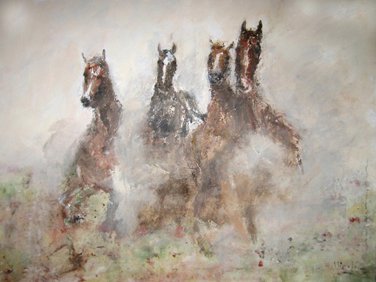 Vier paarden in aantocht — €750,00