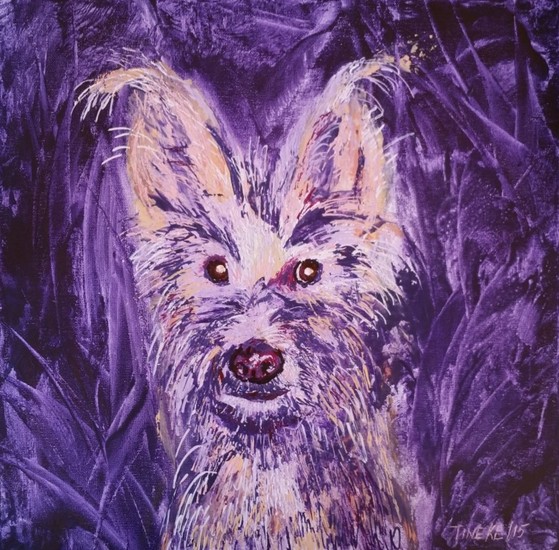 Paarse kat abstract geschilder met bijenwas